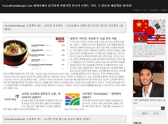 이런 문제를 인식하고 블로그(www.koreabrandimage.com) 운영을 통해 국가 브랜드 이미지 중요성에 대해 꾸준히 홍보 활동을 벌이고 있는 강우성씨(29. 뉴욕대학교 대학원생)는 "이와 같은 음식 표기법은 한글에 무지한 외국인들에게 한식을 비롯한 한국 고유 문화에 대한 인지도를 높이는데 큰 걸림돌이 되고 있다"고 지적했다.